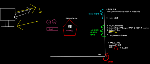 - 요청이 들어오면 request, response, thread 객체 생성